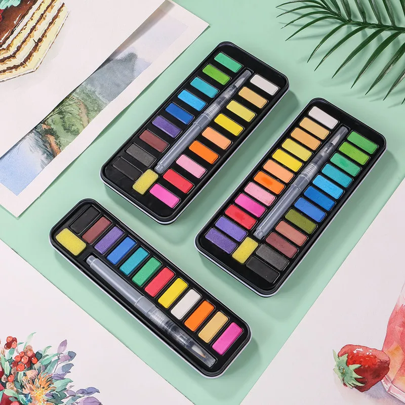 【 Sleek Package】With the metal box, our watercolor paint sets are protected from any fall, hit or bump,which allows you to paint anywhere.Create colorful and lively painting when inspiration hits you!